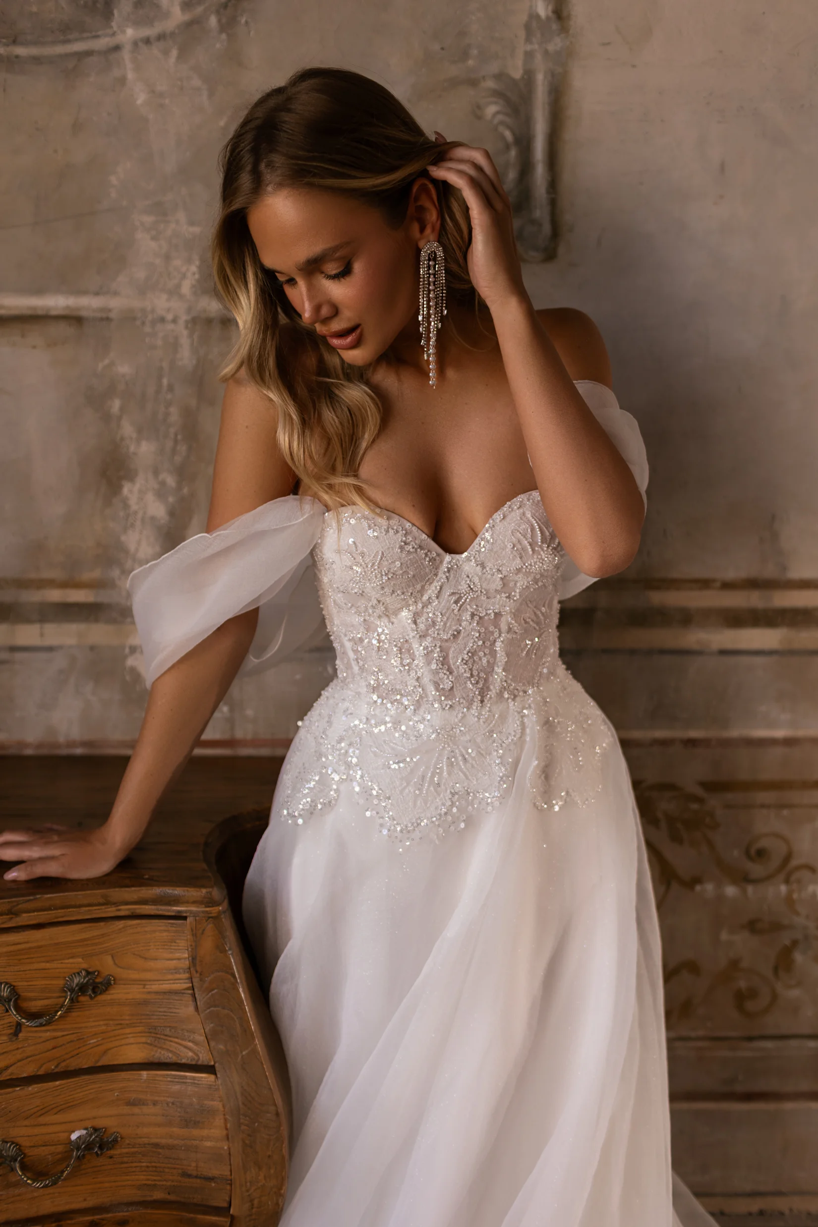 Платье Иола очаровывает своей грацией и мягкими линиями силуэта, которые создают эффект воздушности. Эта модель подчёркивает женственные формы, оставаясь при этом лёгкой и удобной для движения. Элегантный дизайн позволяет использовать платье как для классической церемонии, так и для романтичной прогулки на свежем воздухе. Иола — выбор невест, стремящихся к утончённому и лёгкому образу.