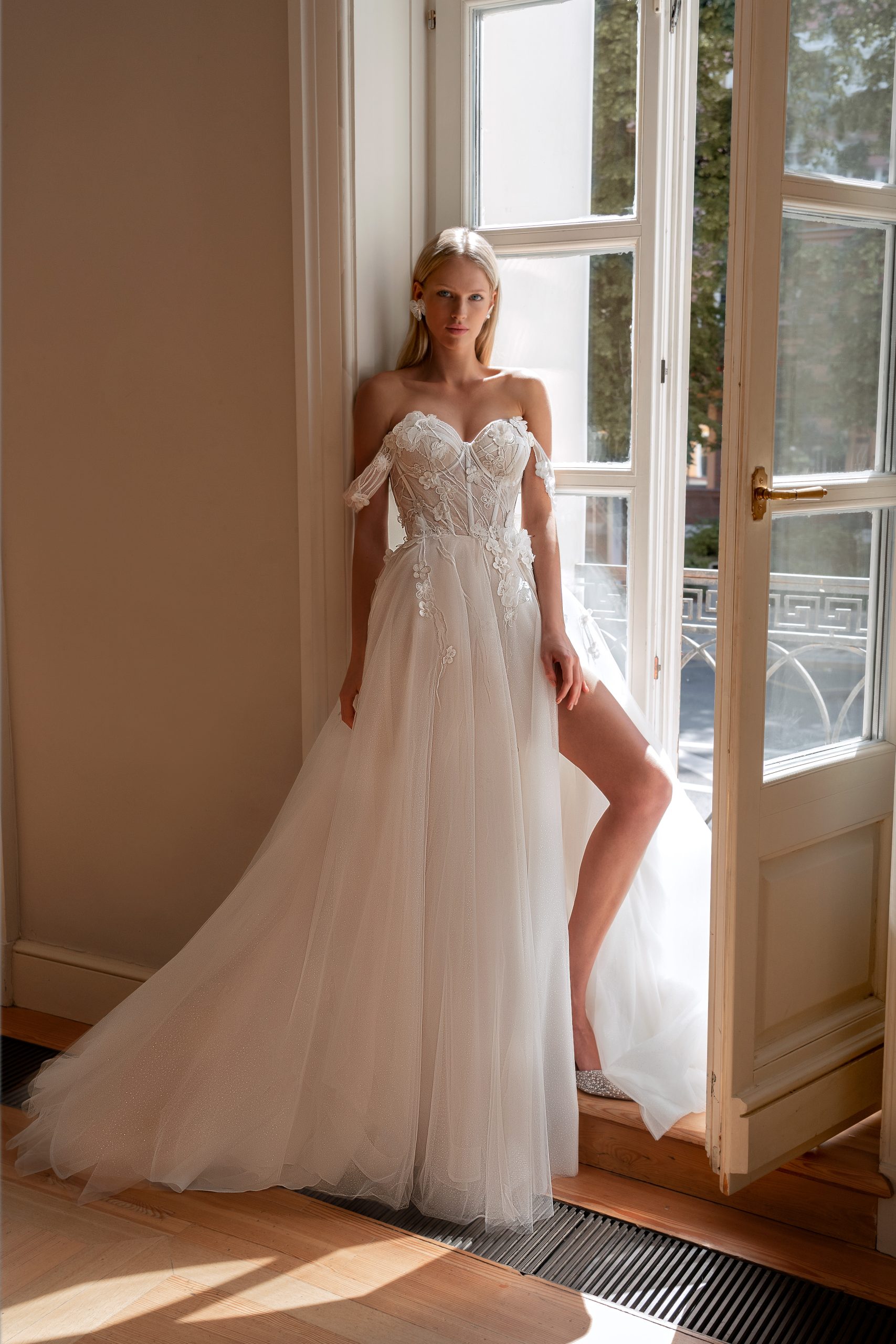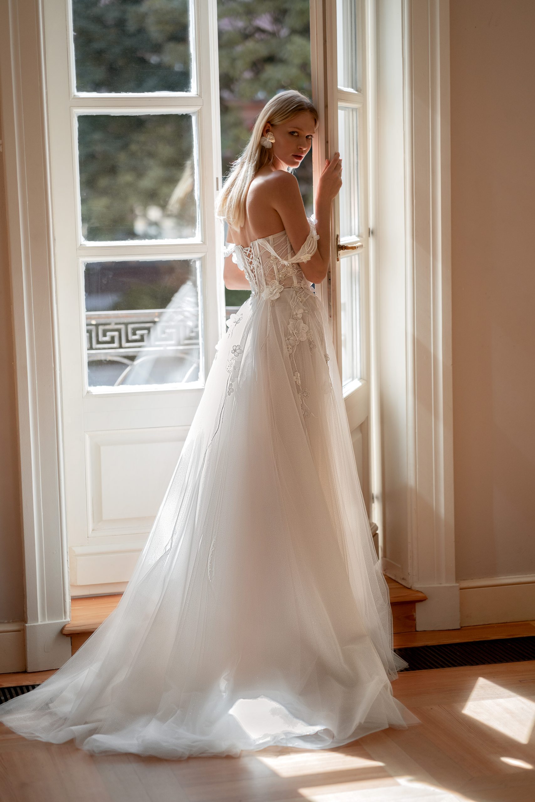Это платье будто соткано из света и музыки момента — для самой чувственной «да» в жизни.
