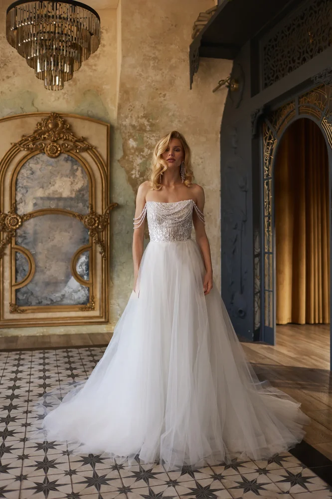 Это платье для невест, которые ценят минимализм, стиль и архитектурный крой. Стеси выглядит эффектно без лишних деталей, позволяя образу оставаться актуальным вне времени. Идеальный выбор для стильной современной свадьбы